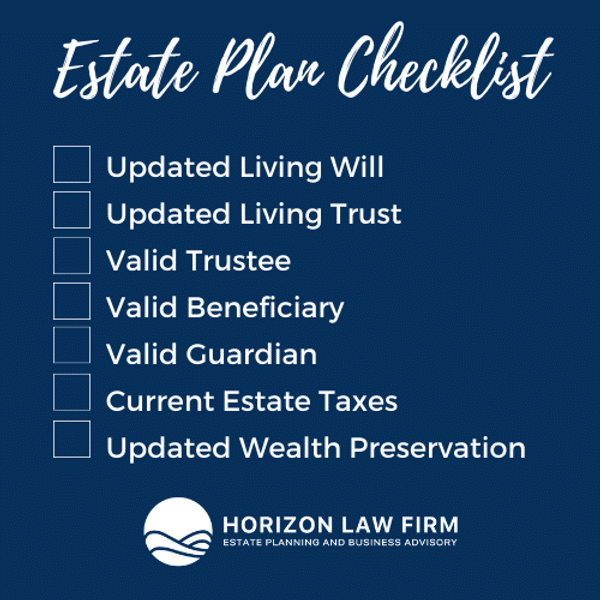 How good is your estate plan? Check out our Estate Plan Checklist. Missing any of these items? Reach out to Horizon Law Firm.